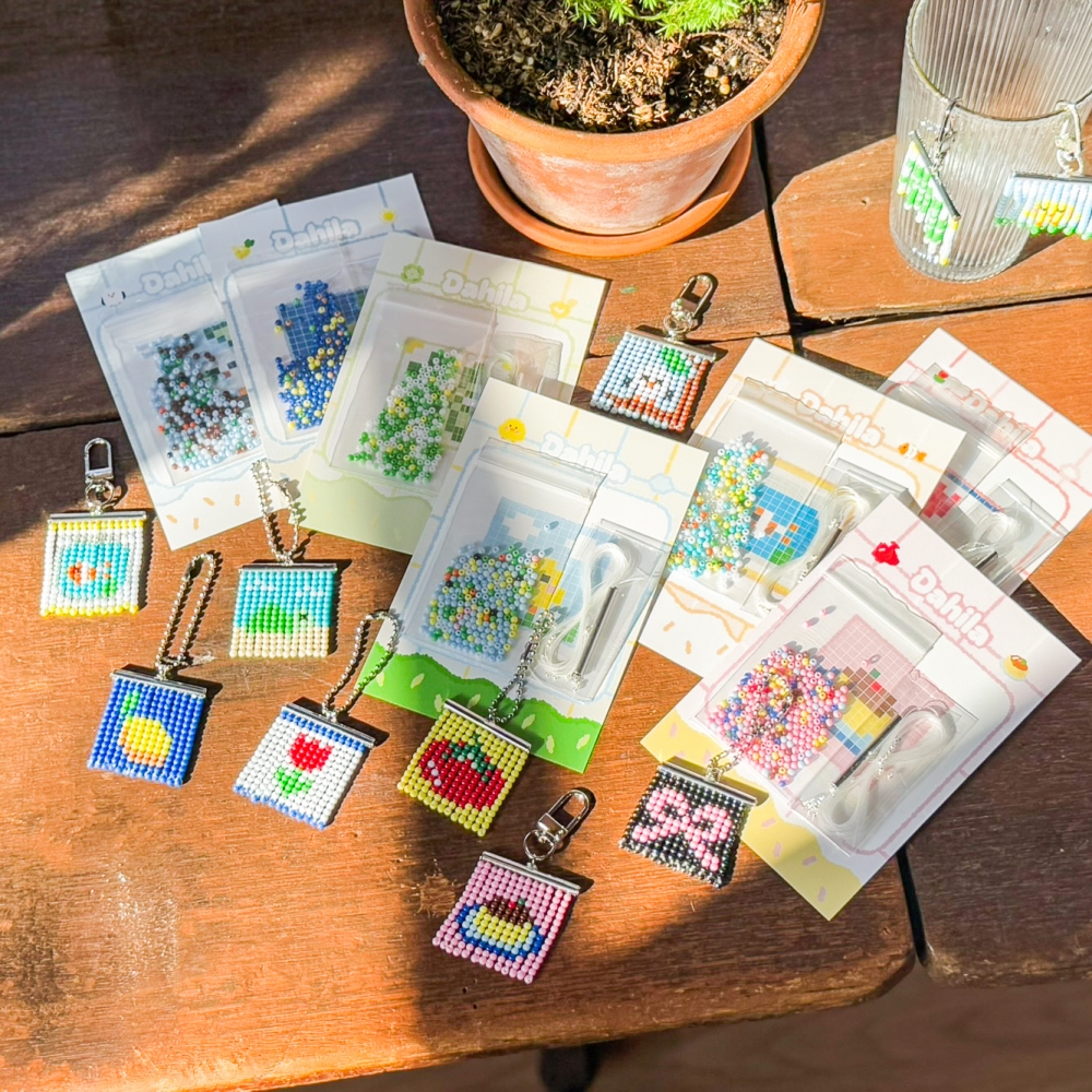 키치 미니 비즈발 비즈 키링 만들기 DIY 키트 세트 옷핀 [10종 재료 도안 토마토 네잎클로버 어항 푸딩 리본 가방 템]