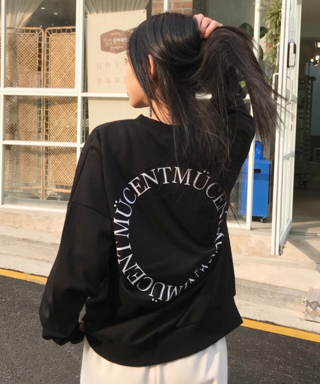 [12/31 예약배송] 시그니처 백 라운드 원형 로고 루즈핏 롱슬리브 맨투맨 남녀공용 (2컬러)