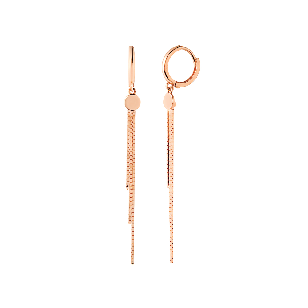 [비앤비골드] 14K 서클 세줄 체인 롱 드롭 원터치 링 귀걸이 한쌍 PNE26510