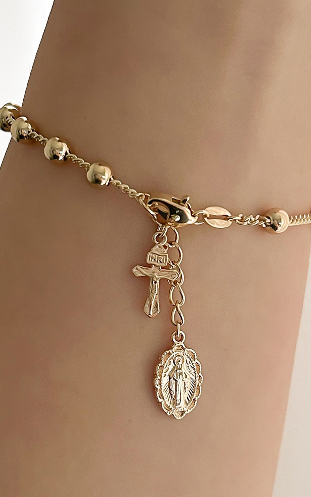 14k 18k 묵주팔찌 - 천주교 기적의패 성모마리아 십자가 묵주 팔찌