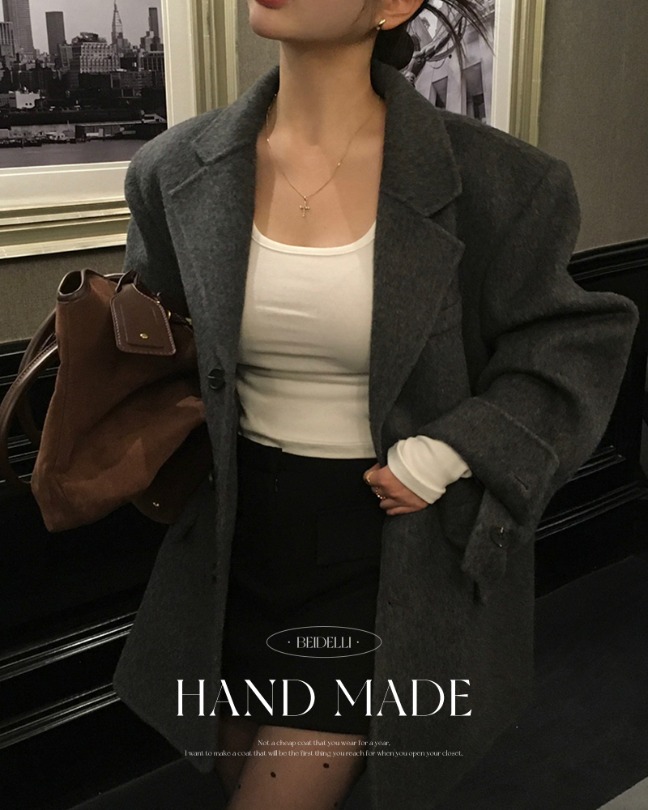 [당일출고][MADE/울100%]앤틱 핸드메이드 오버핏 하프 코트
