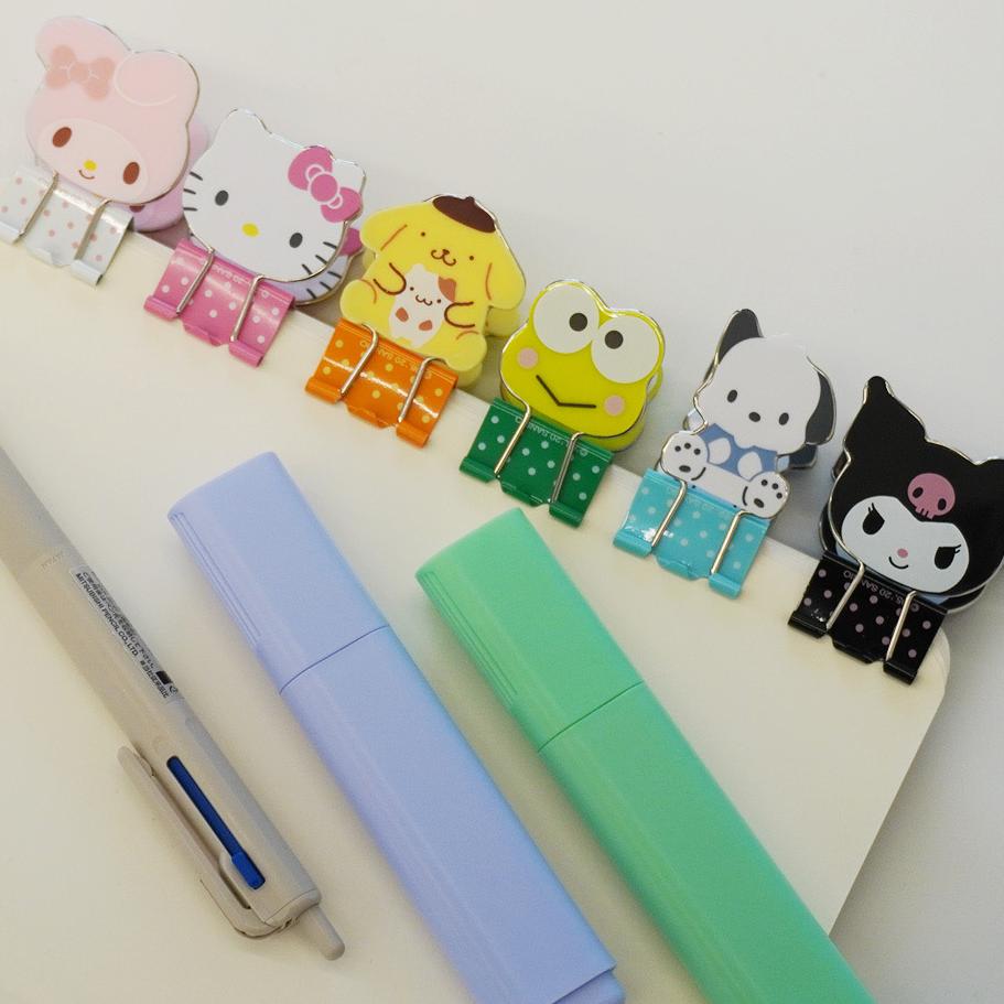 공식정품 산리오 바인더클립 6종 - 키티 포챠코 마이멜로디 쿠로미 폼폼푸린 케로피 소품 문구집게 더블클립 사무용 클립 서류 집게 산리오문구 산리오굿즈