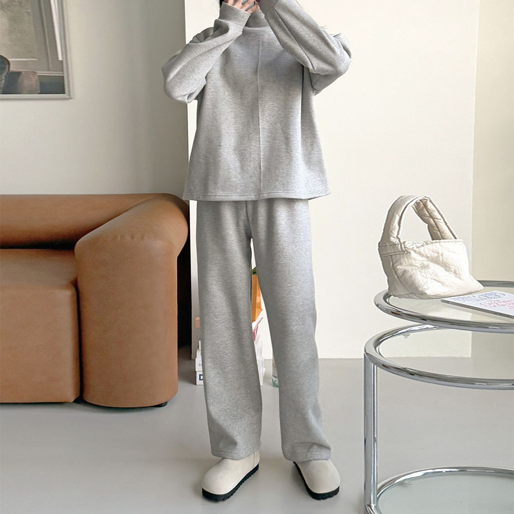 문에이블 여자 여성 겨울 기모 루즈핏 목폴라 마실룩 등원룩 밴딩 팬츠 세트