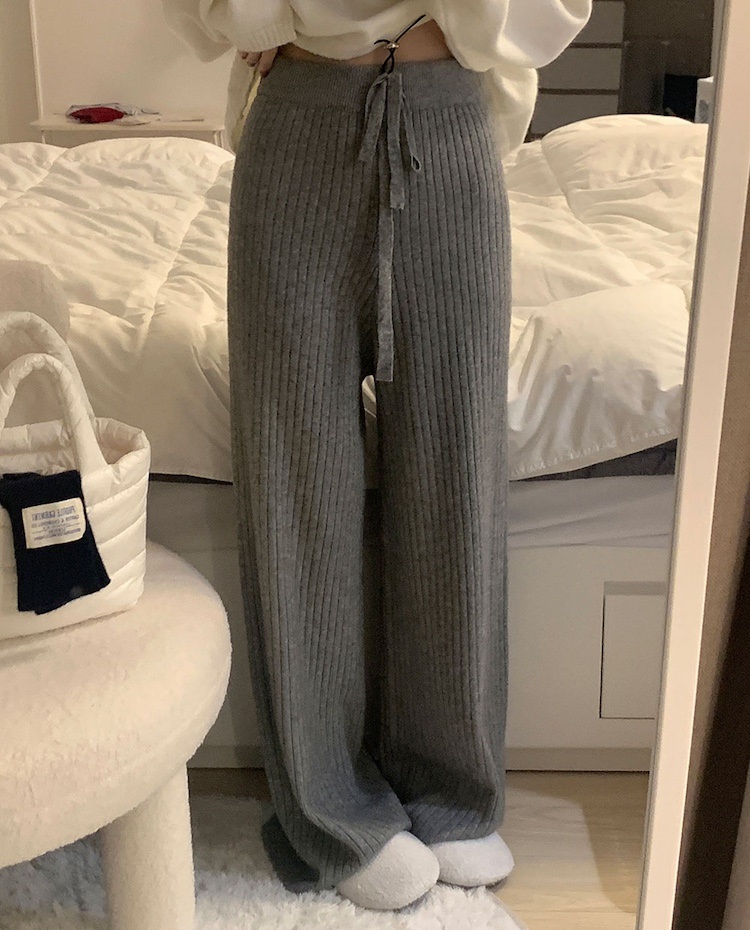 망망 봄 가을 겨울 니트 밴딩 와이드 팬츠 바지 골지 데일리룩 그레이 베이지 블랙