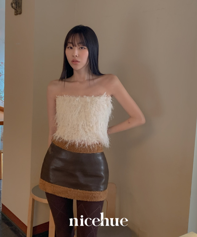 [SALE] 걸리쉬 레더 미니스커트 2color / 가을 간절기 h라인 가죽 갈색 브라운 퍼 블랙 키작녀 하비 뽀글이 빈티지 짧은 로우라이즈