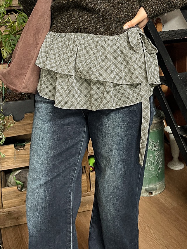 빅사이즈 S-2XL 린코니 쉬폰 캉캉 플레어 레이어드 리본 밴딩 미니 랩 스커트