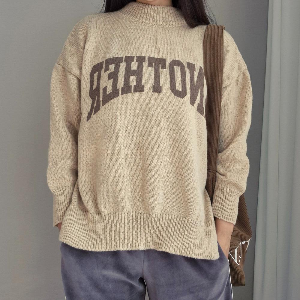 프린팅니트 옆트임니트 겨울여행룩 베이지스웨터