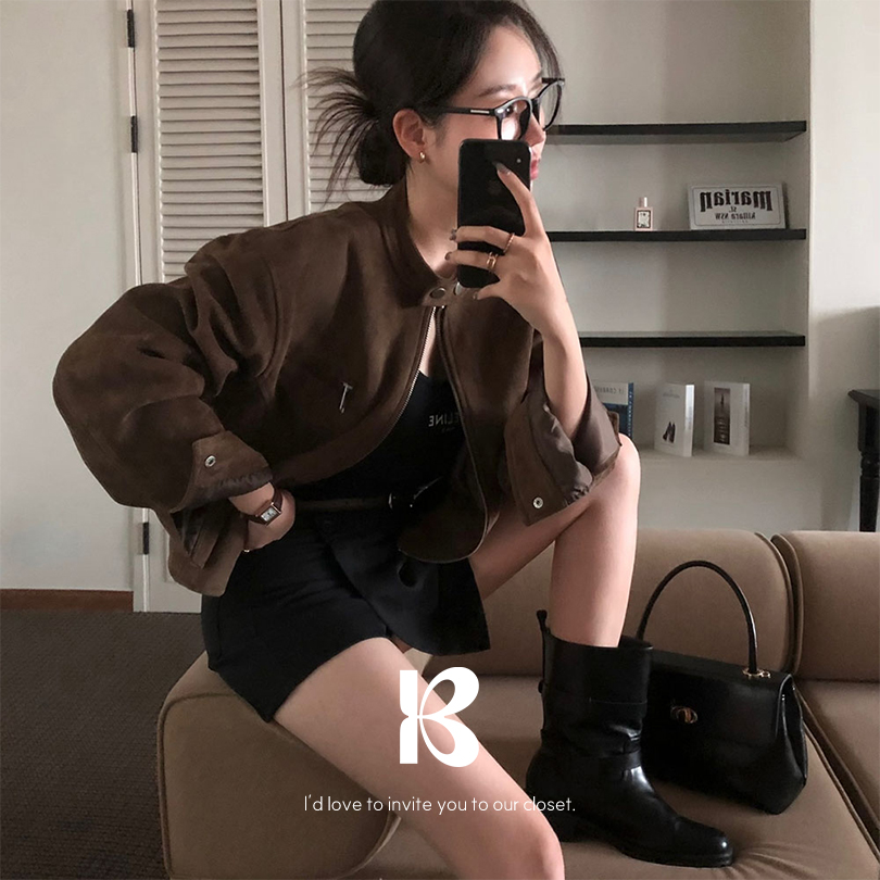 [MADE/루즈핏]테일 스웨이드 차이나 크롭 자켓