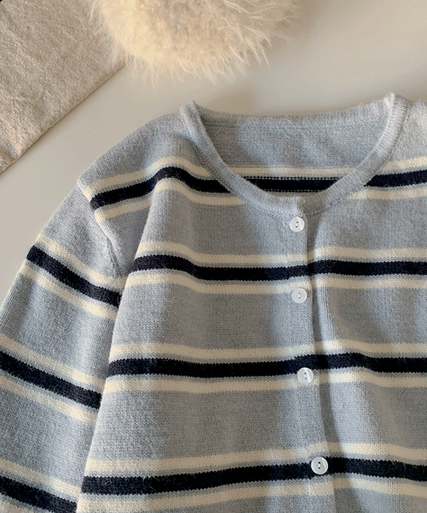블루늬 보송 스트라이프 니트 가디건 (2color)