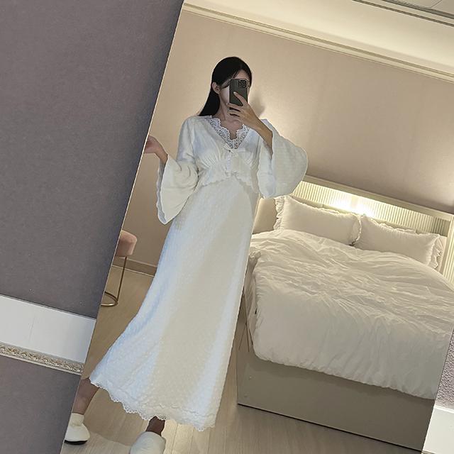엠보 극세사 레이스 수면잠옷 원피스 겨울 홈웨어 파자마