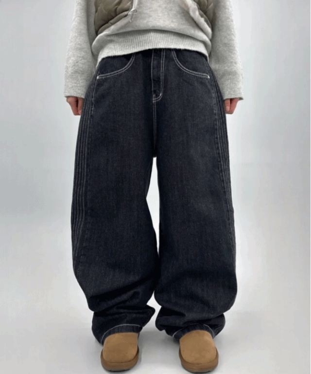 [핏보장/벌룬] 언툰 스티치 메가 와이드 데님 팬츠