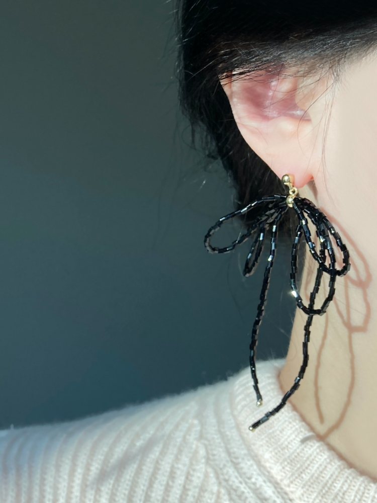 디나페 블랙 비즈 리본귀걸이