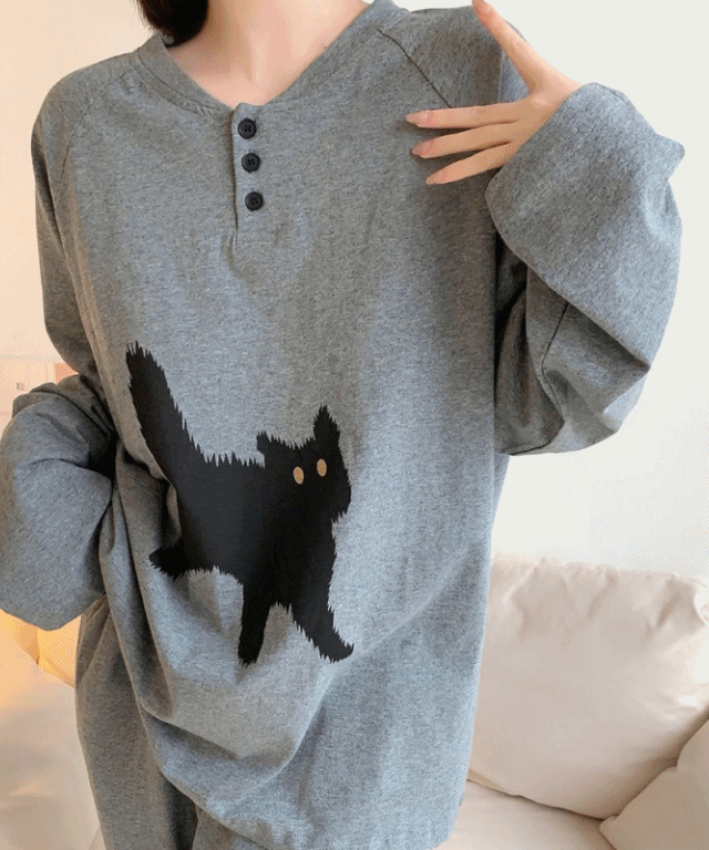 봄신상/당일출고 긴팔 기절각 블랙캣 파자마 잠옷 상하세트 홈웨어 (3201)