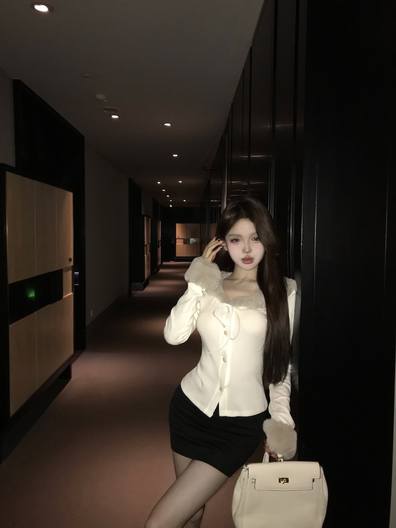 에코퍼 카라 리본 버튼 슬림 긴팔 티셔츠 SE2422DE1190