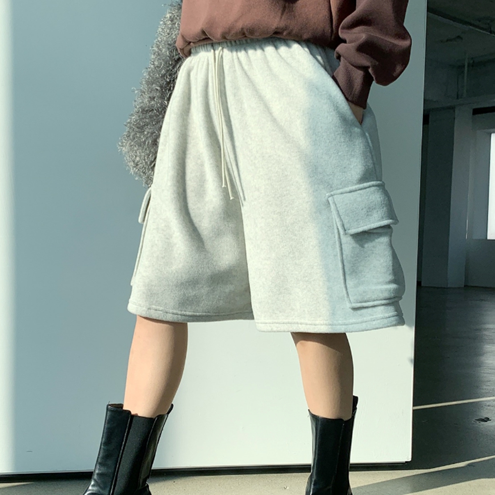 여자 겨울 스트릿 후리스 트레이닝 카고 포켓 반바지