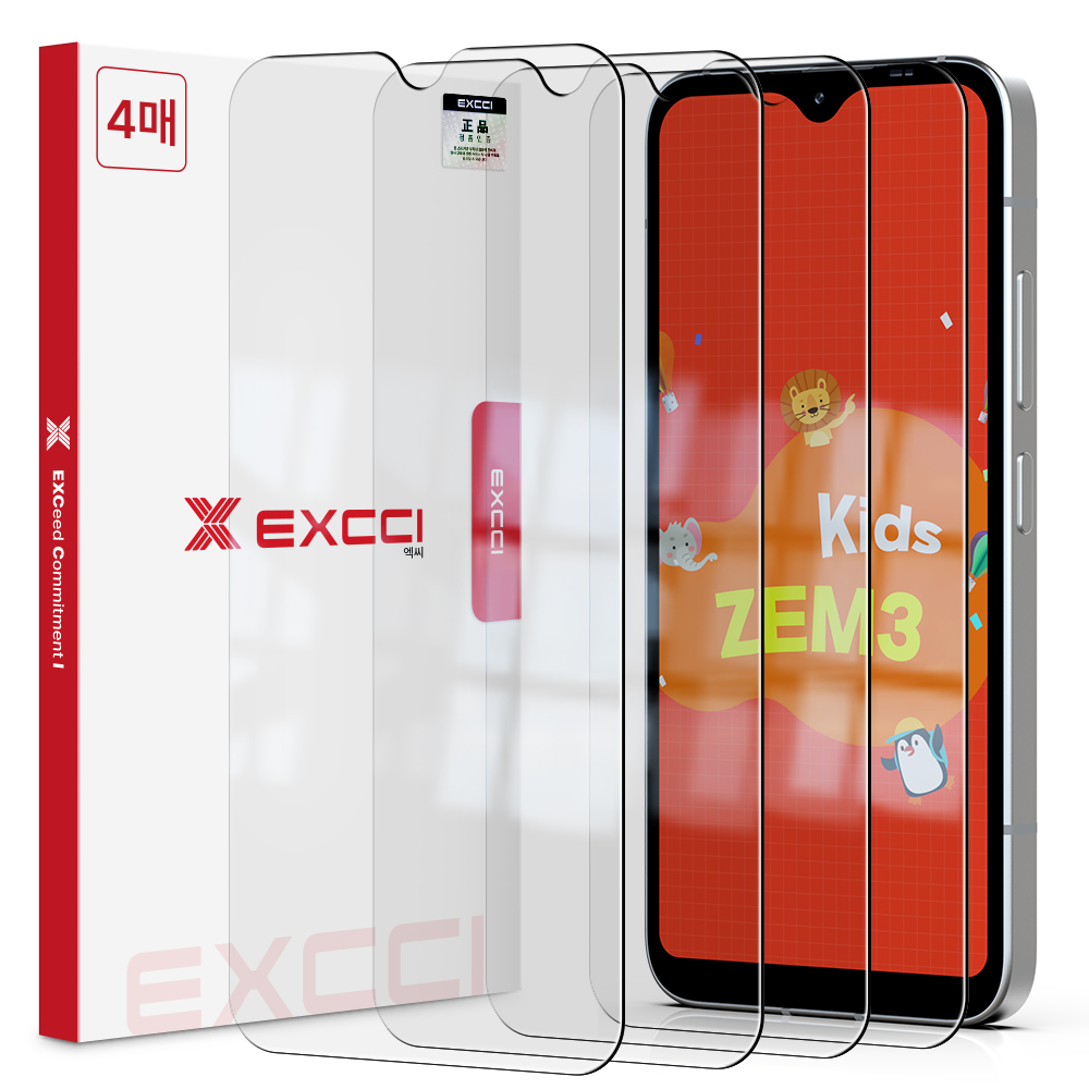 엑씨 ZEM폰 포켓몬에디션3 키즈폰 라운드컷 완벽 핏 글리터 강화유리 액정보호필름 4매