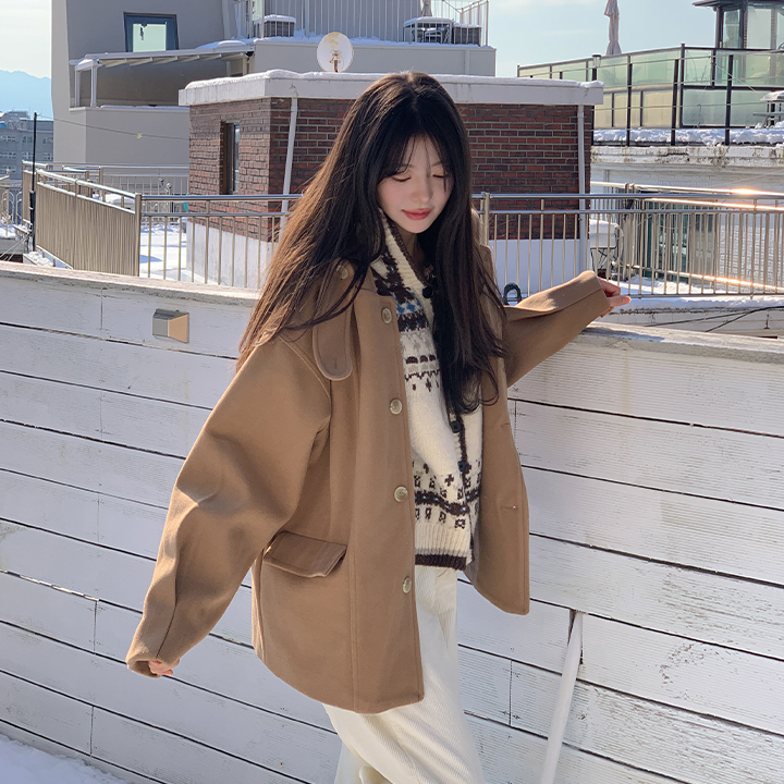 누보 후드 오버핏 숏 울 하프 포켓 발마칸 반 코트 - 4color (KD2001)