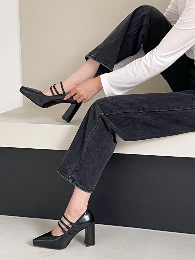 펄스 스틸레토 가보시 스트랩 통굽힐 여성구두