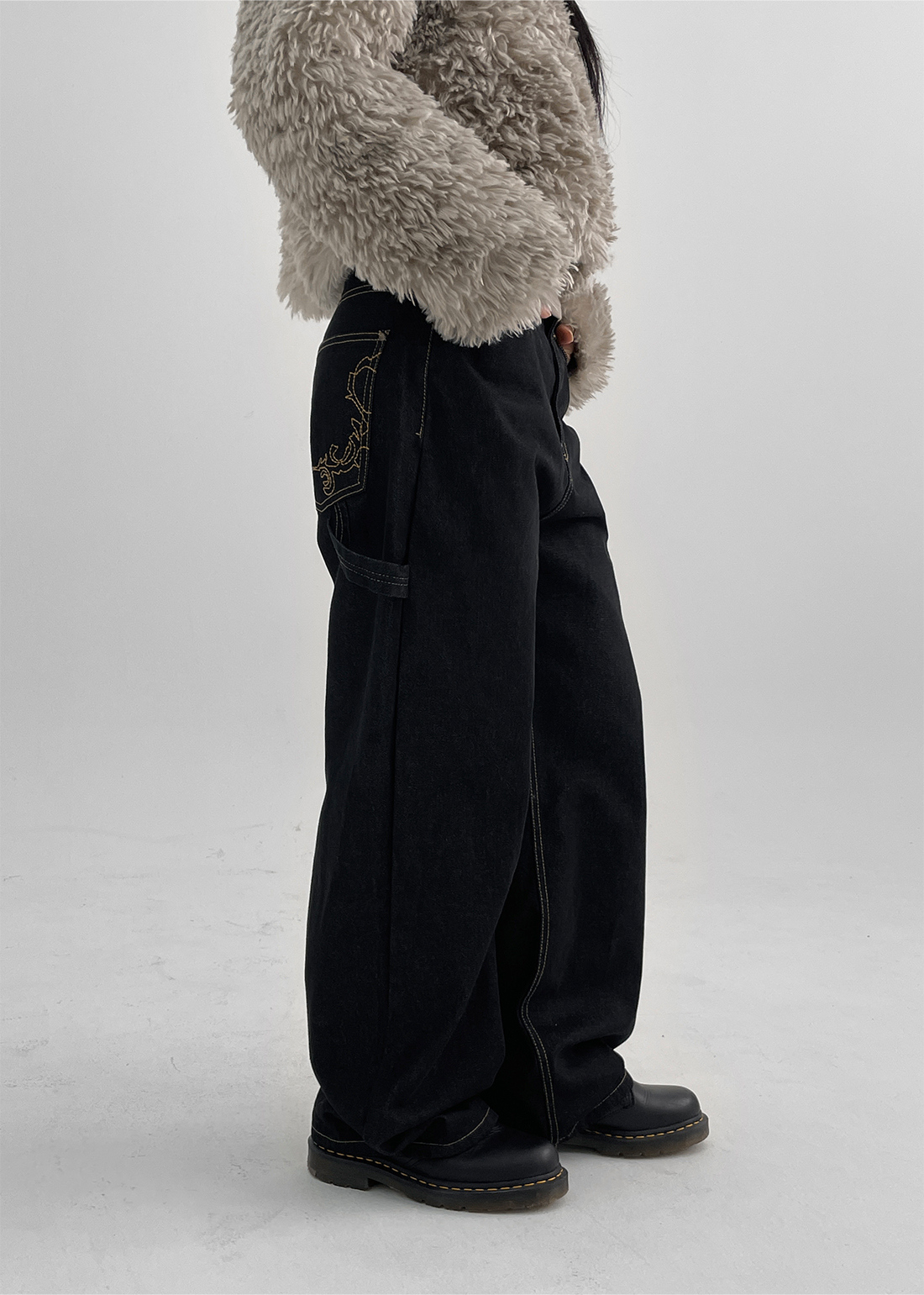 피롱 자수 카펜더 생지 와이드 데님팬츠