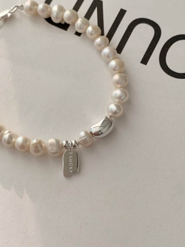 실버925 천연 담수진주 럭키 팬던트 레이어드 은팔찌