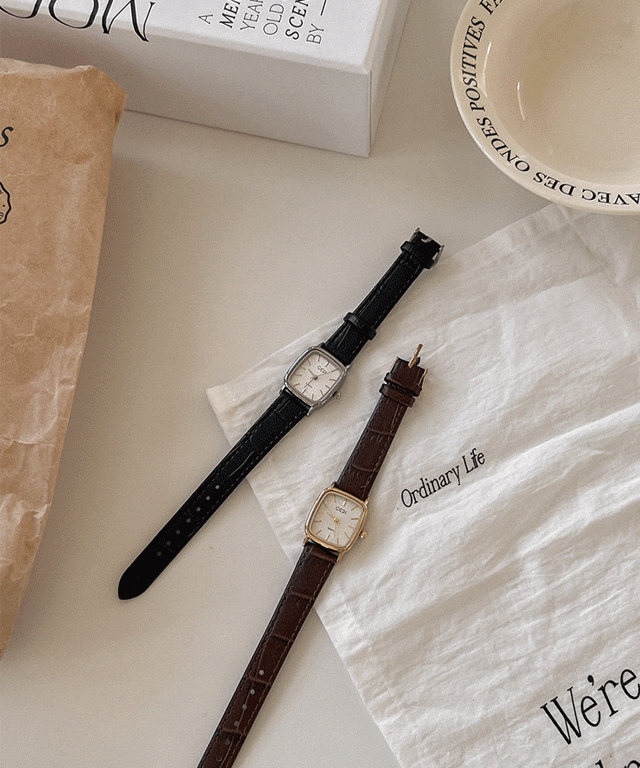[생활방수/2color] 스퀘어 클래식 레더 가죽 손목시계