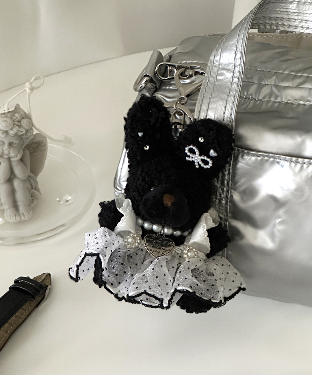 [Handmade] dot dress bunny Keyring 도트드레스 블랙버니 키링 가방고리