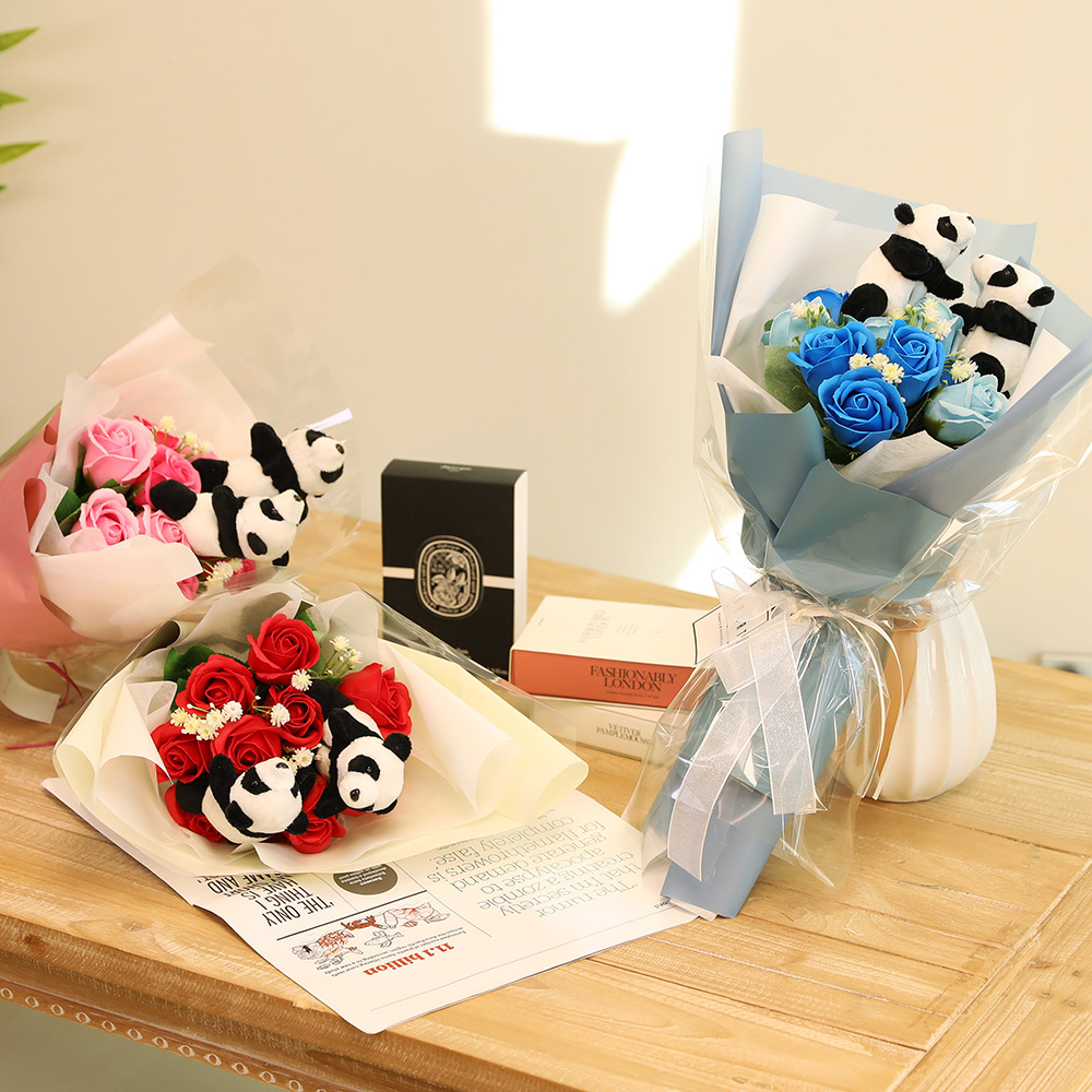 비누꽃 졸업식 입학식 선물 판다커플 비누장미 10송이 인형 꽃다발