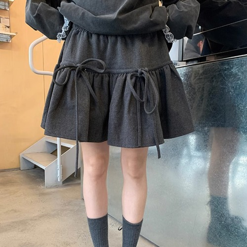 [🎉허리밴딩/바지안감/리본장식❤️모직스커트/도톰 따뜻🥇품질 좋아요🚛무배] 보우 리본 플레어 모직 스커트 s161577
