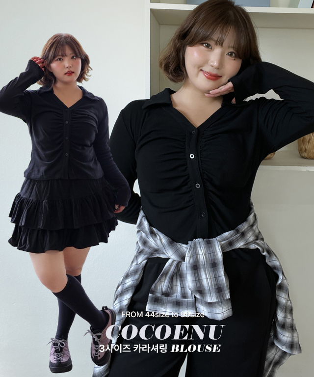 [빅사이즈] 44- 88 셔링카라긴팔티[ 빅사이즈 가을 코듀로이 데일리 하객룩 출근룩 봄신상 긴팔 모임 스판티]