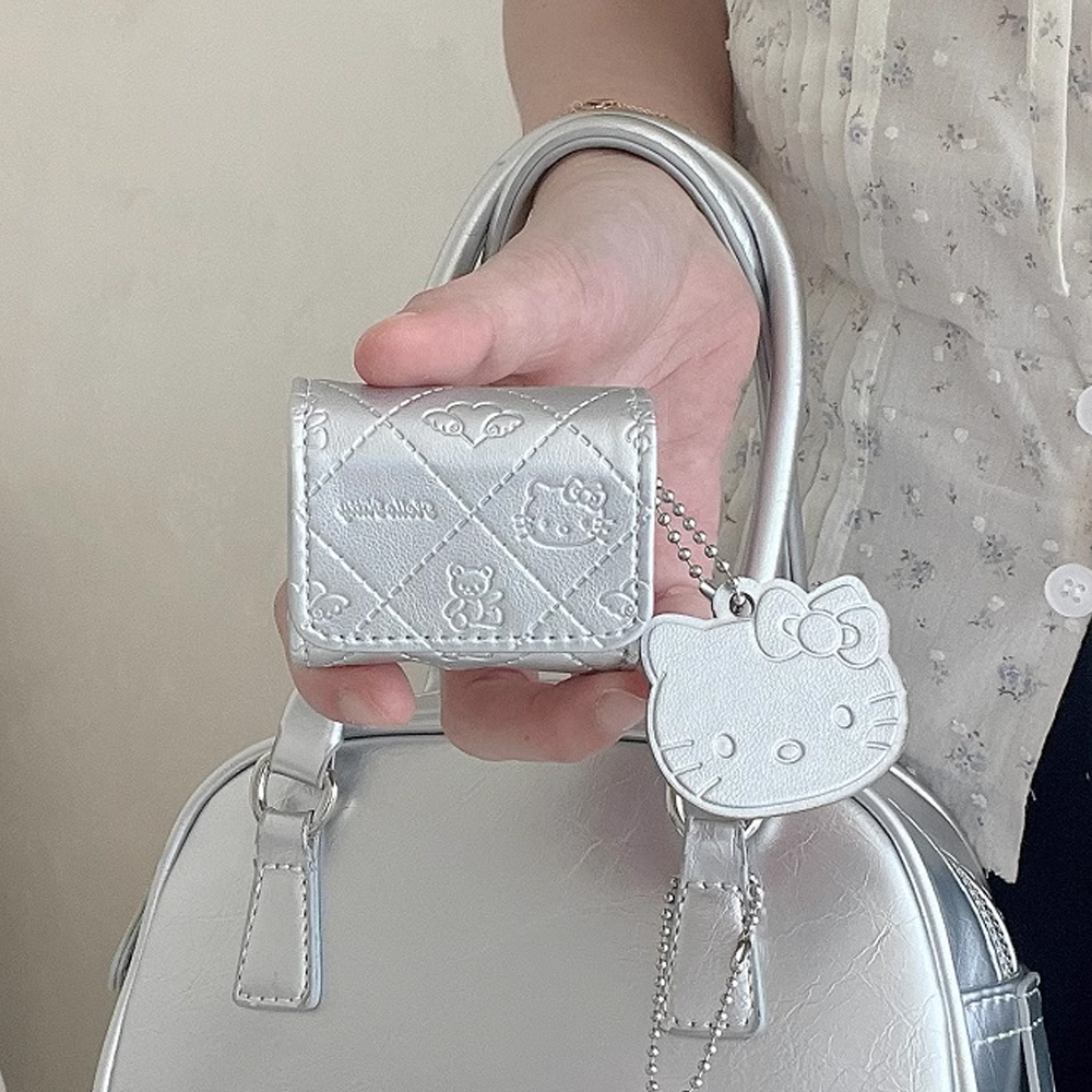 Mamor 실버 헬로고양이 가죽 음각 키링 에어팟4세대 에어팟 프로 프로2 airpods pro pro2 airpods4 에어팟4 보호 커버 키치한 디자인 케이스