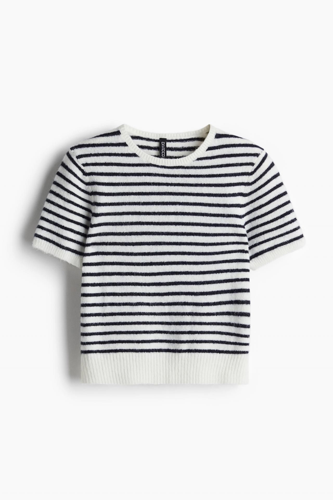 에이치앤엠 파인니트 티셔츠 1262821005 CREMA/RAYAS