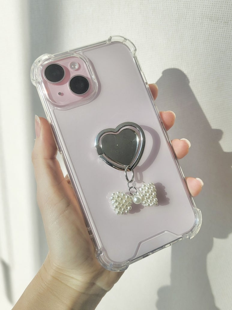 비즈 진주 리본 하트 스마트톡 + 우아한 핸드폰 거치대 그립 홀더톡 폰꾸 아이폰케이스 하트톡