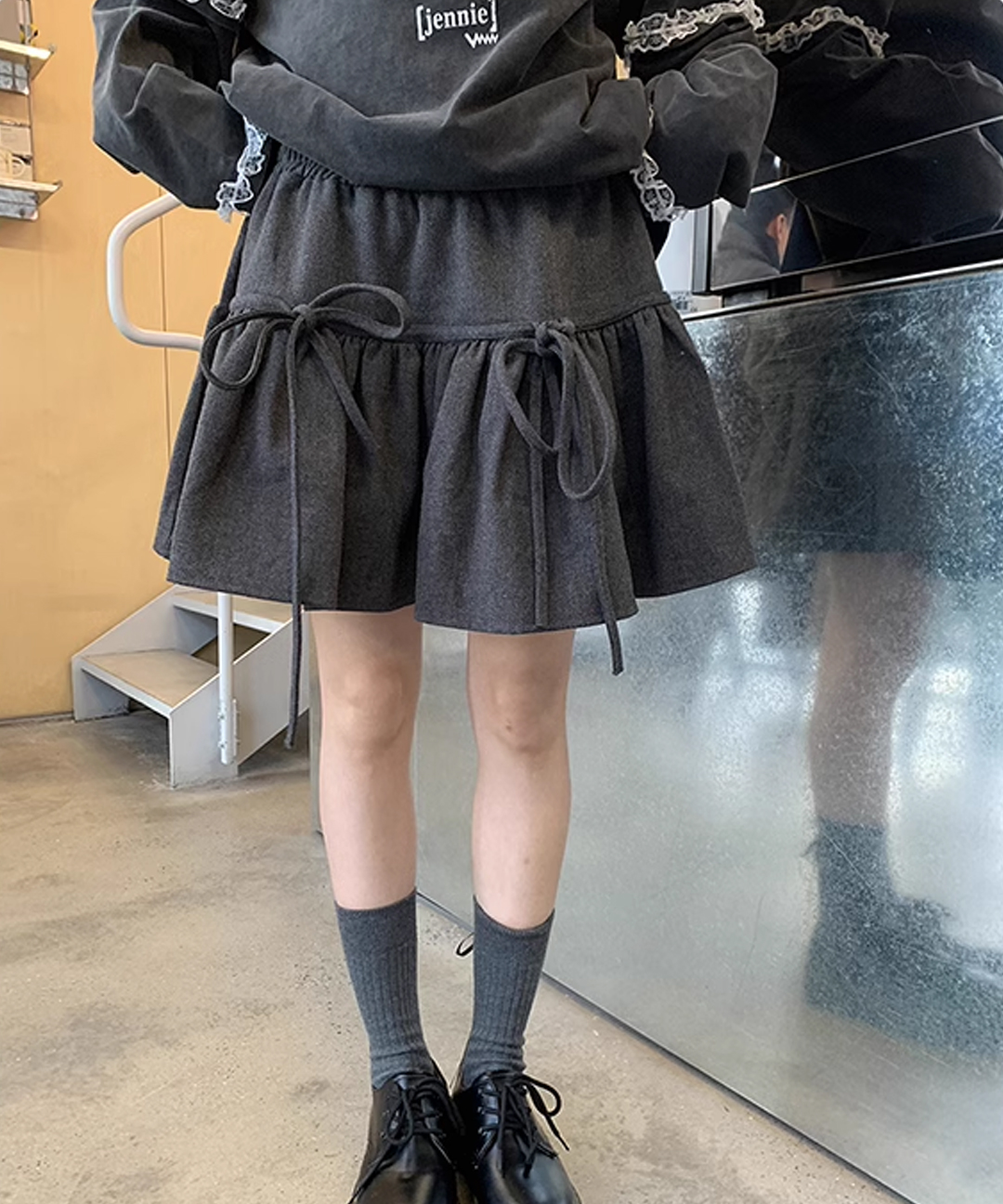 [🎉허리밴딩/바지안감/리본장식❤️모직스커트/도톰 따뜻🥇품질 좋아요🚛무배] 보우 리본 플레어 모직 스커트 s161577