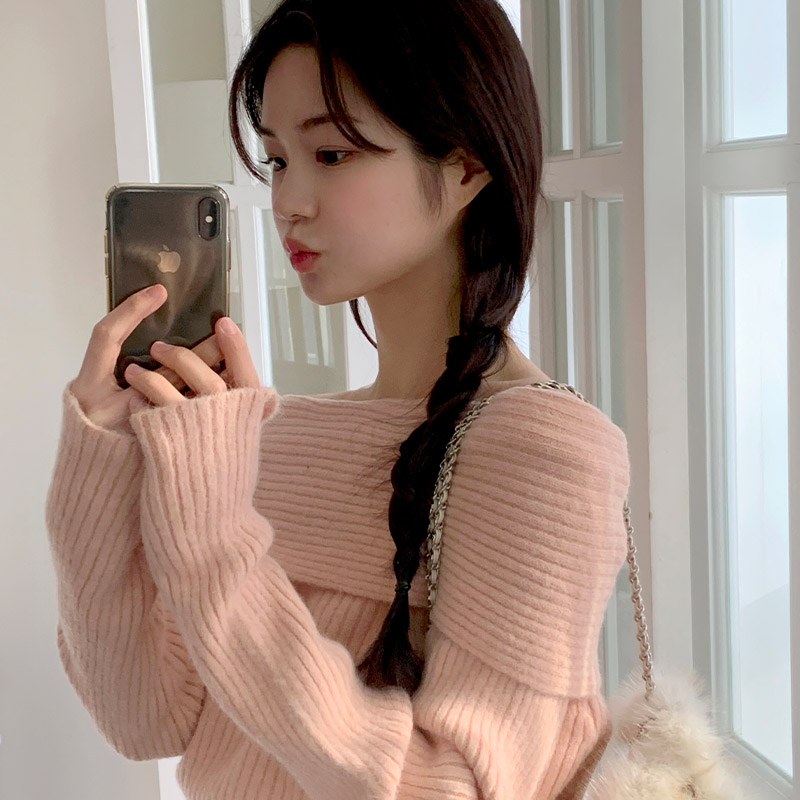 (로맨틱무드/쫀쫀) 토브 골지 오프숄더 연말룩 하객니트 니트 nt4850