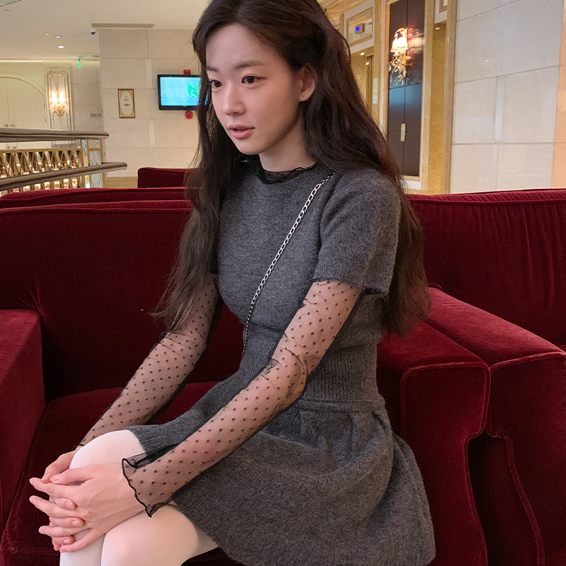 [오늘배송][MADE]리지 도트 시스루 폴라티 (3color) (하객룩 겨울하객룩 하객 레이어드 롱슬리브 레이어드티 레이어드티셔츠 레이어드긴팔 반폴라 레이어드긴팔티)