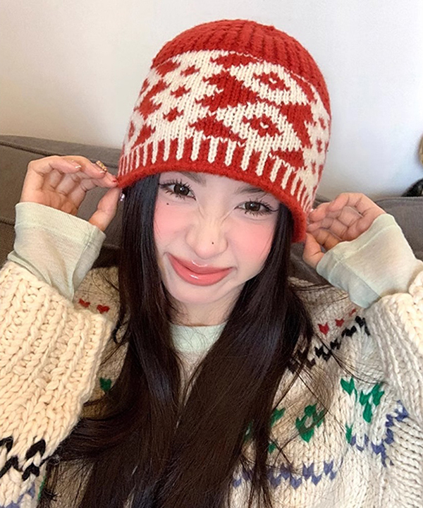 무료배송 에스닉 노르딕 비니 (레드,블랙,아이보리)