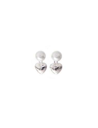 [딸기샤베트][925 은] . W Ribbon 109 진주 드롭 하트 은귀걸이_Earrings