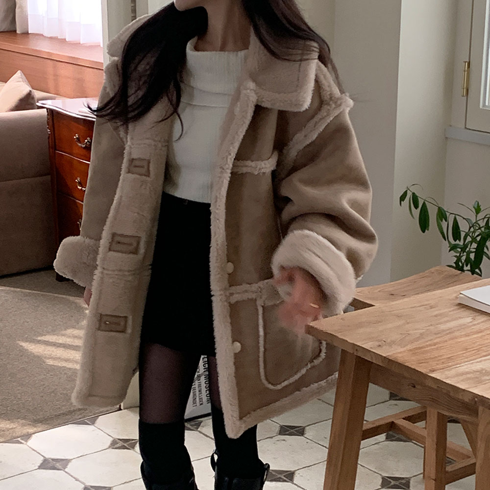 [왕따뜻/인기 /퀄리티보장 ] 리버시블 하프 무스탕 배색 뽀글이 겨울자켓 왕따뜻 밀턴 양면 오버핏 겨울코디 데이트룩 데일리룩