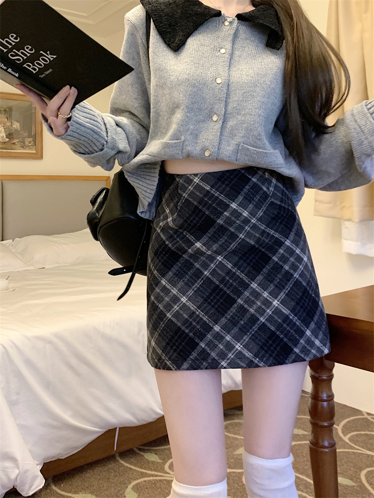 신상 하이웨스트 체크 울 미디 스커트 겨울 체크 몸매 라인 A라인 숏스커트
