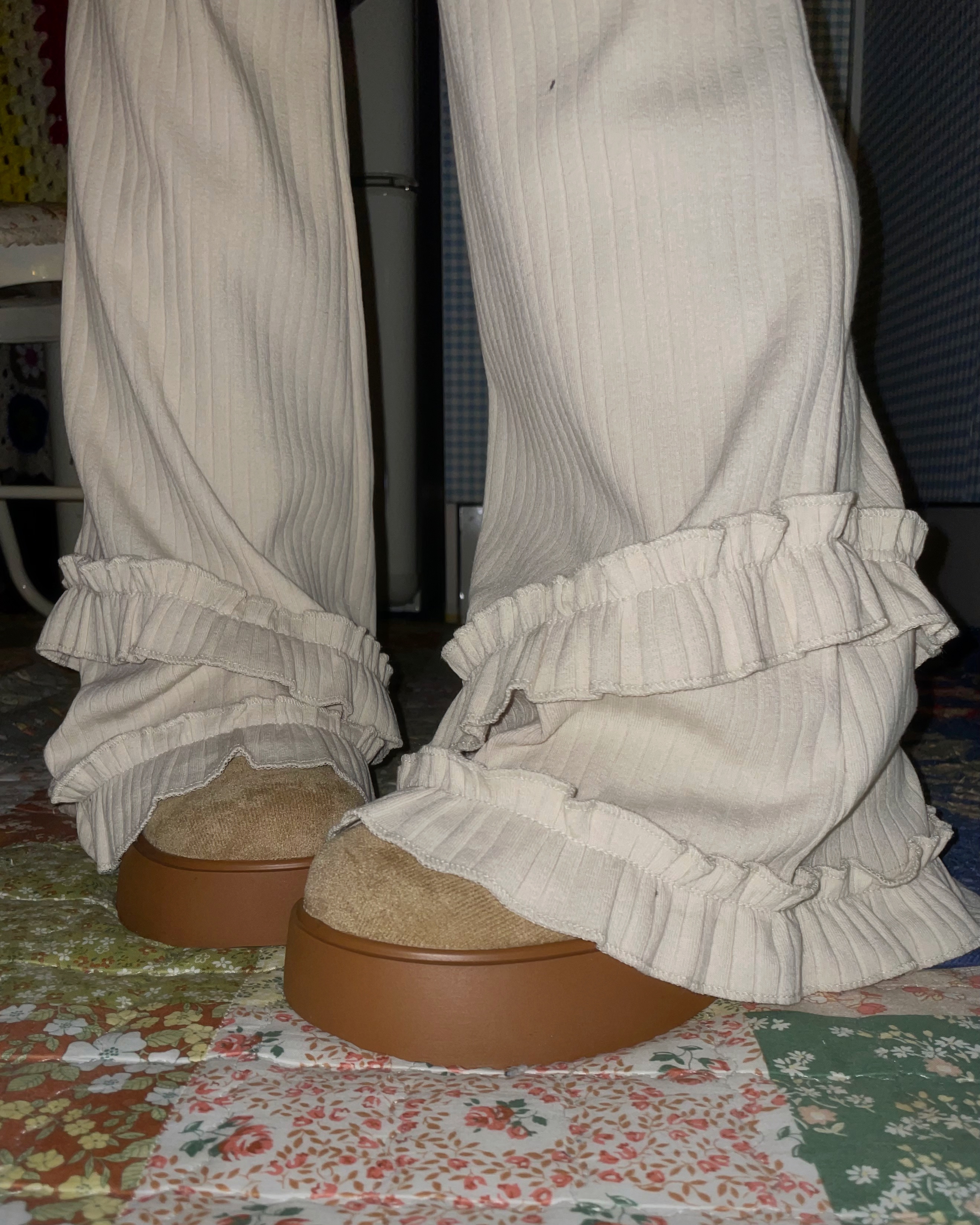 (3color) 프릴 부츠컷 골지 니트 밴딩 팬츠