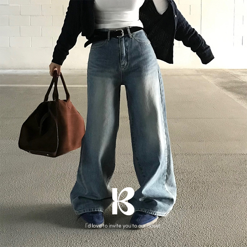 [MADE/숏,롱]온오프 워싱 와이드 데님팬츠