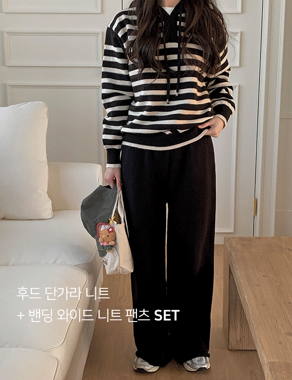 2pcs 단가라 후드 니트 셋업 (3color) ‘후드니트+밴딩니트팬츠set’