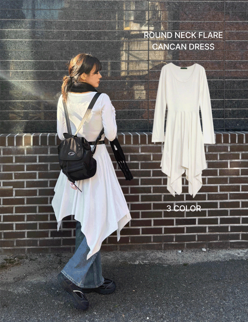 에리너 라운드넥 플레어 캉캉 원피스 - 3 color