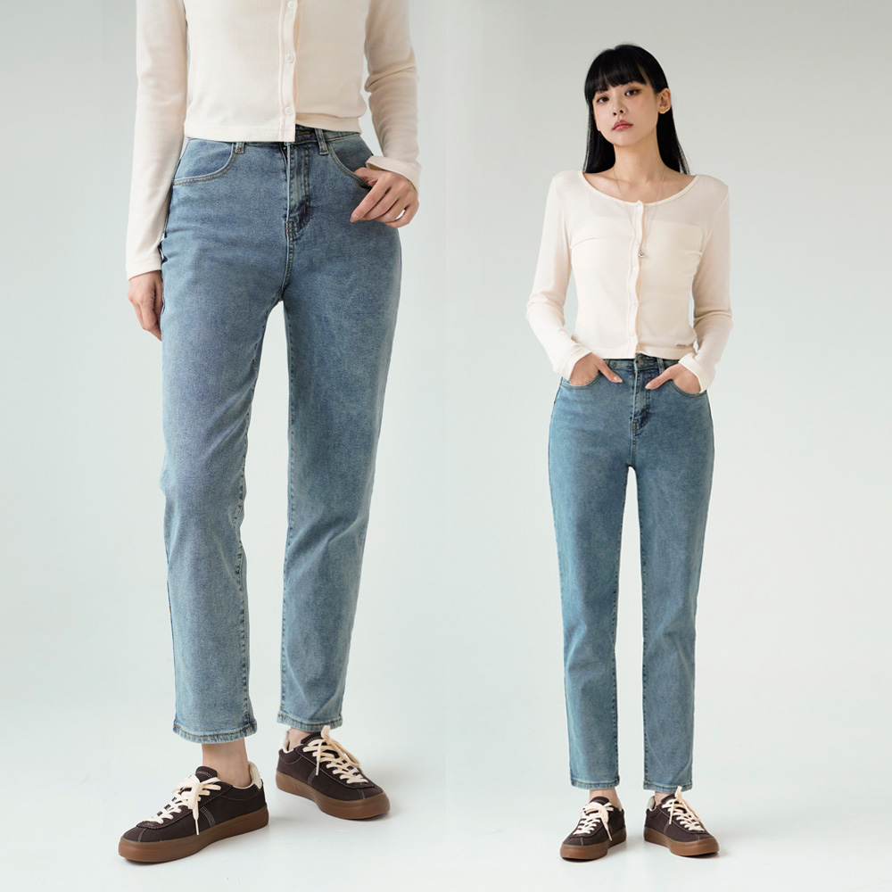 [MADE/숏,미들,롱] 블루 베이직 3단기장 하이웨스트 스판 밴딩 일자 청바지 1color