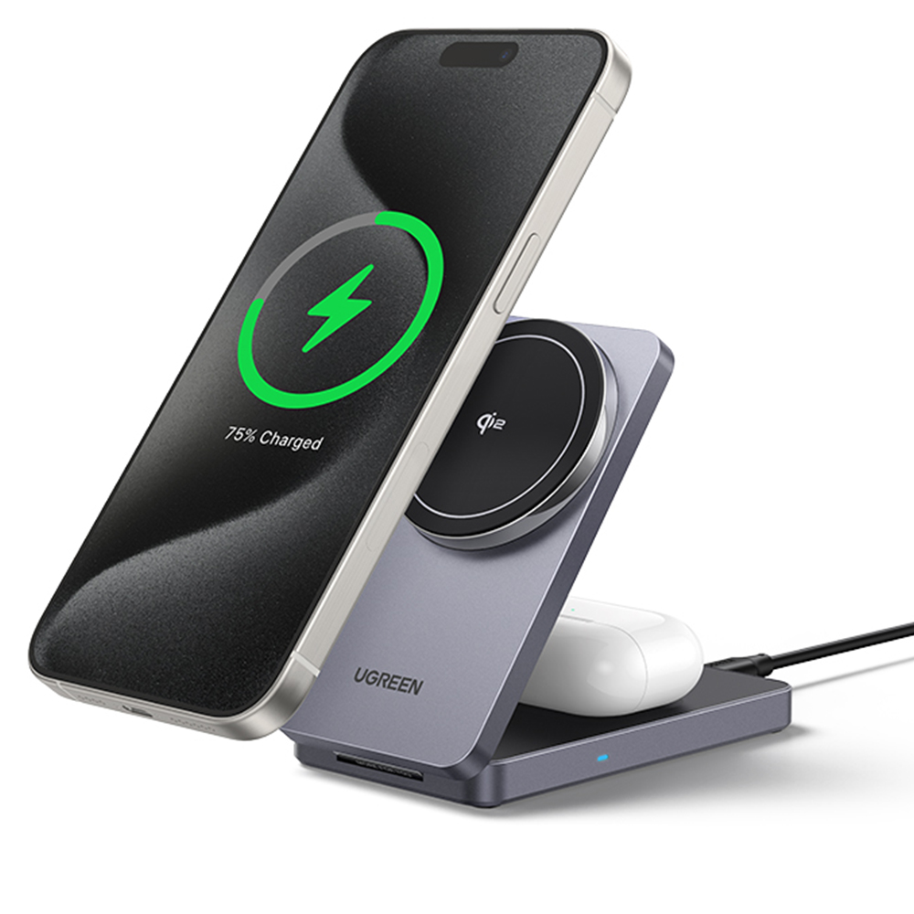 유그린 맥세이프 Qi2 무선 고속 폴더블 2in1 15W 충전기 W706