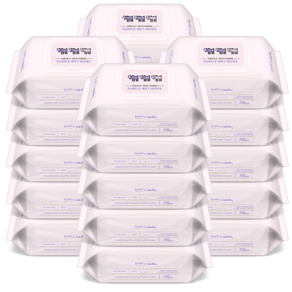 한예지 키스해링 퍼플 물티슈 캡형 100매 20팩