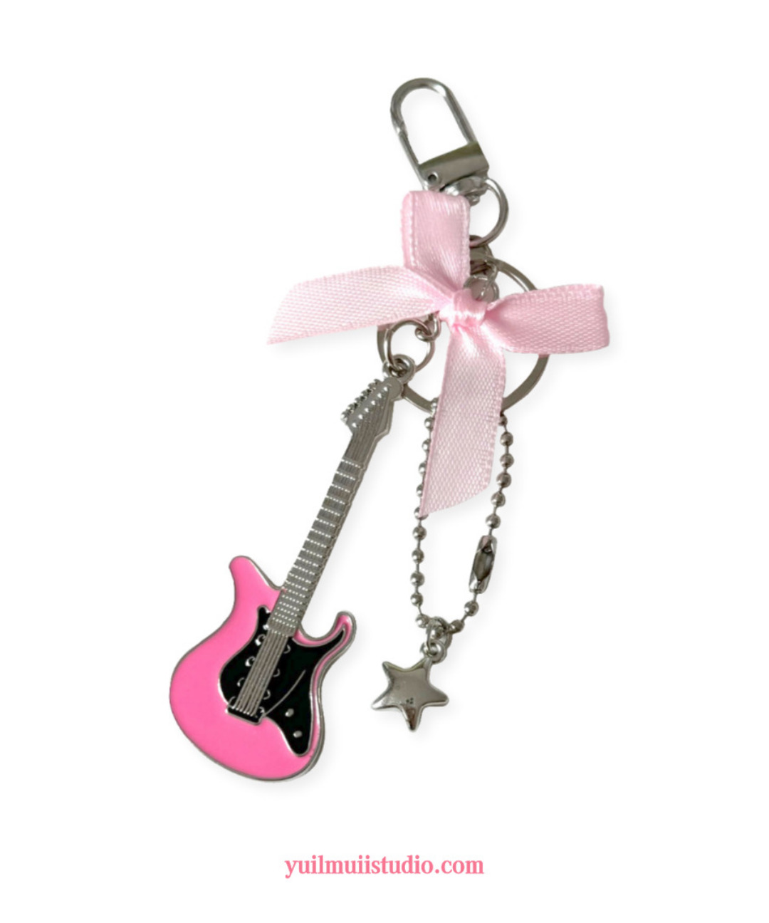 y2k 핑크 락스타 기타 키링 리본키링 락시크
