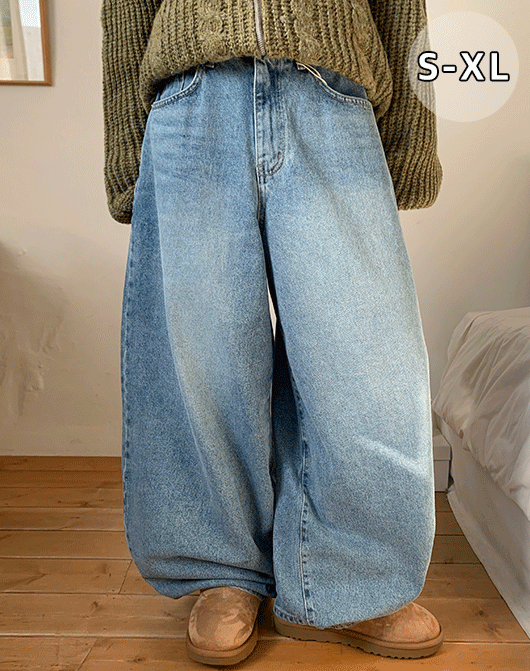 로잇티 워싱 와이드 벌룬 데님 팬츠