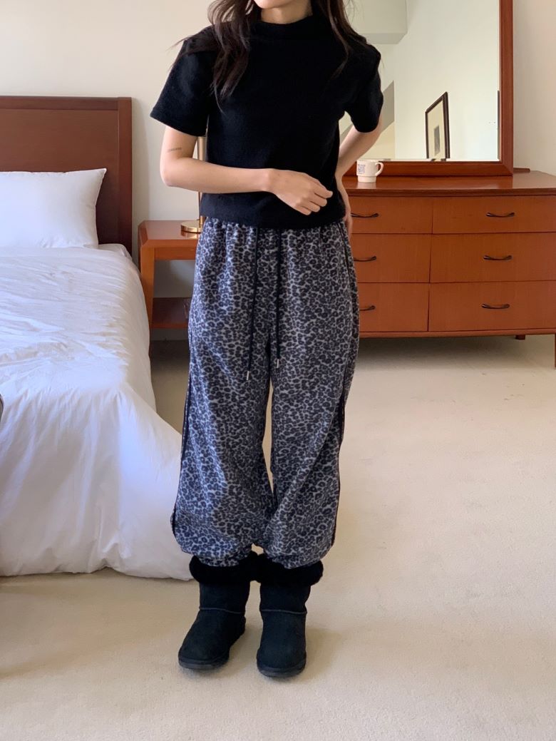 국내제작 도톰 따뜻 레오파드 후리스 트랙팬츠 호피 조거팬츠 투웨이 와이드팬츠 보온팬츠 밴딩바지 밴딩팬츠 편한바지 2color