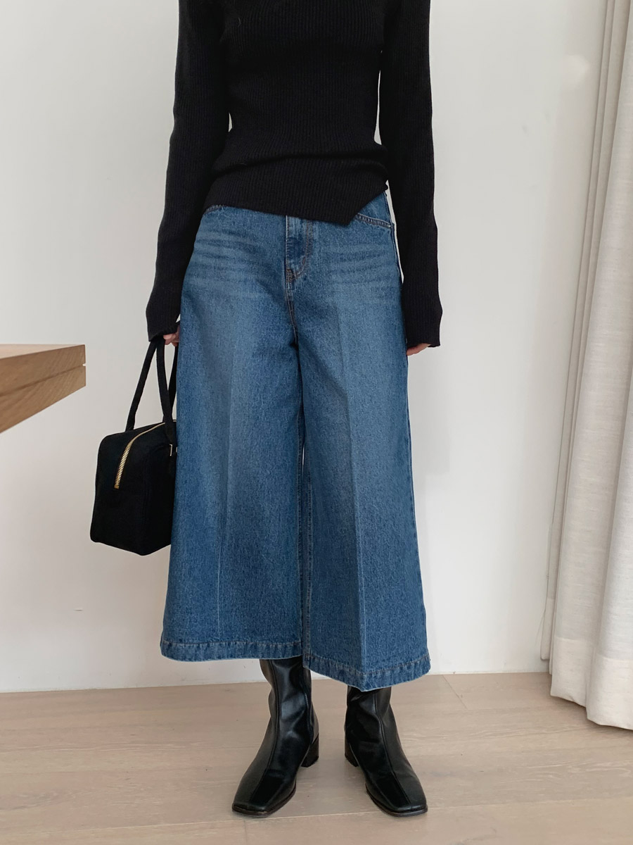 아벨 레직기 8부 워싱 데님 버뮤다 중청 흑청 팬츠 2color